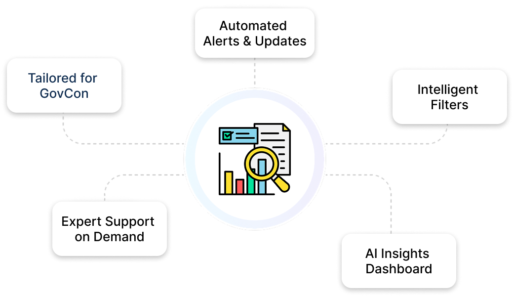 Find the right government contracts faster with intelligent filters and real-time opportunity alerts.